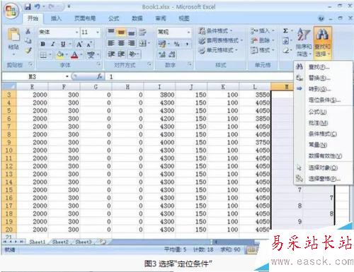 5、選中工資表A列的數(shù)據(jù)區(qū)域,執(zhí)行“開始”→“查找和選擇”→“定位條件(S)”命令(如圖8所示)。