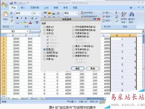 6、在打開的“定位條件”對話框中,選擇“空值”,然后單擊“確定”按鈕(如圖9所示)。