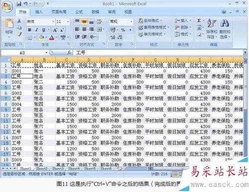 4、復(fù)制表頭的工資細(xì)目數(shù)據(jù)(如圖7所示)。