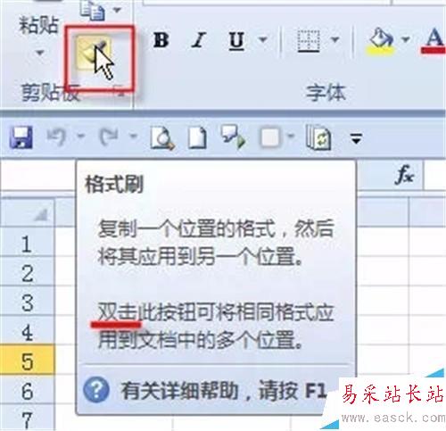 雙擊格式刷圖標,就可以在excel中多次使用。