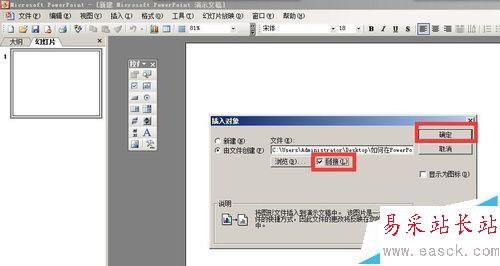 注意事項:在插入對象對話框要勾選鏈接選項。