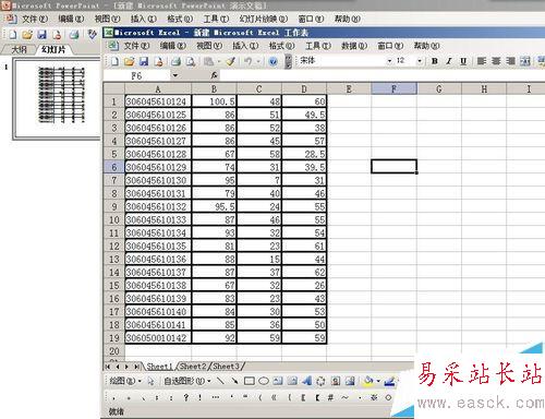 7、在打開調(diào)用的Excel表格后,可以對表格的數(shù)據(jù)和格式等進(jìn)行修改,這是都會在PowerPoint中同步現(xiàn)實,不需要另外再次插入。如圖
