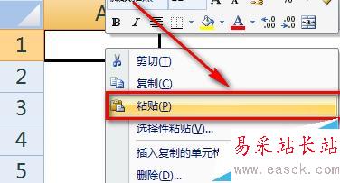 2、選中新表的一個單元格,選擇鼠標右鍵的【粘貼】功能。這樣行高就復制過來了。