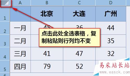 1、鼠標點擊原始數據表左上角行列交叉處(如下圖)全選表格(快捷鍵是Ctrl+A),選擇復制。粘貼到新表格時所有的行高和列寬都保持和原始數據區域不變,然后刪除無用的行列即可。