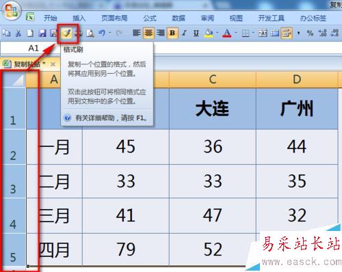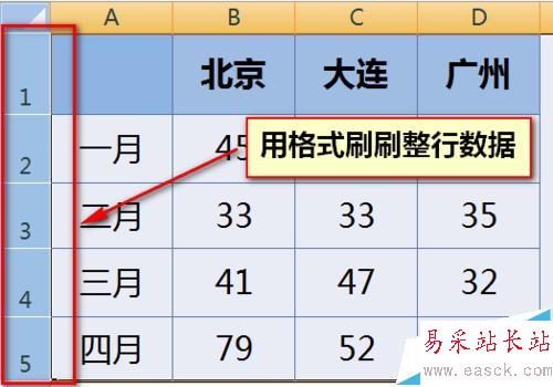 4、同樣的方法,選擇原始表格的整列,然后用格式刷刷一下新表格的列即可。