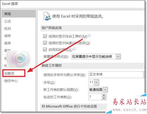 2、加載項在Excel選項中,點擊“選項”進入設置。