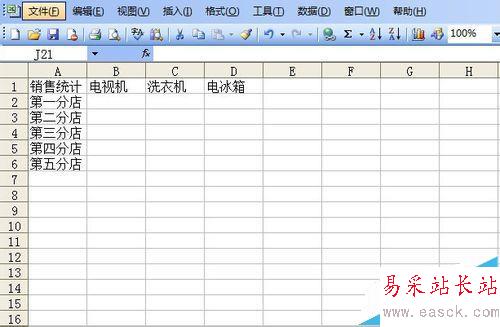 3、編輯新工作表。輸入必要的內(nèi)容,如下圖所示。接下來,我要把每個(gè)點(diǎn)的銷售數(shù)據(jù)匯總到這張表上,你可能會(huì)問,這有什么難度,復(fù)制粘貼就好了。好了,我給你100張工作表,讓你去復(fù)制吧。我們做事要講究效率。
