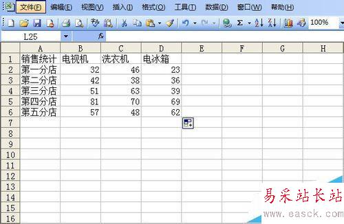 1、需要解決的問題。在這里為了方便起見,我提供一個(gè)比較簡(jiǎn)單的工作簿,來說明問題。這個(gè)工作簿記錄了一家電器銷售商店某個(gè)月5個(gè)分店的三種電器銷售量。現(xiàn)在要對(duì)它們進(jìn)行匯總,評(píng)定各分店業(yè)績(jī)。打開工作簿文件,可以看到第一張工作表記錄的第一分店的銷售情況。