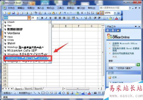 5.在最后面的位置,我們會看到一個叫做“wingdings2”的字體,選擇它,如圖所示。