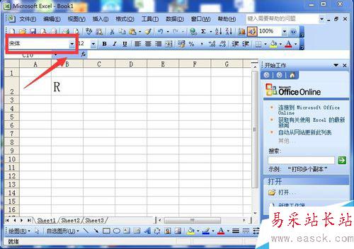 3.輸入字母“R”以后,我們需要選擇改變這個字的字體,點擊字體位置,如圖所示。