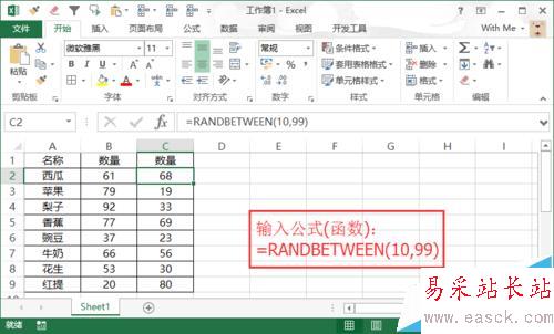 2、在輸入數量的時候,可以利用隨機函數,自動生成數字:RANDBETWEEN函數說明:參數1-起始數,參數2-終止數。例如,在C2單元格輸入公式:=RANDBETWEEN(10,99)并向下填充。將會產生10到99之間的隨機整數,