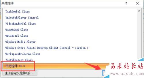 4、點擊”其他控件圖標(biāo),在彈出”其他控件窗口中找到”日歷控件選擇點擊它,然后點擊【確定】。如圖所示;