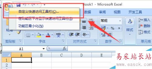 1、打開我們的Excel表格編輯軟件,鼠標(biāo)右鍵點擊office圖標(biāo)在彈出的選項欄中選擇【自定義快速訪問工具欄】點擊并打開它。如圖所示;