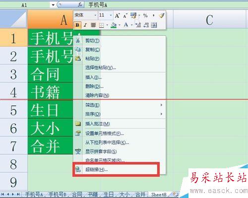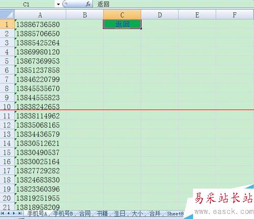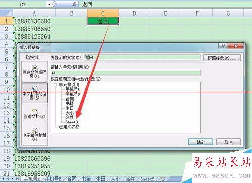 第五步:我們按照剛才的方法,在“手機號A”這個Sheet里設置一下返回到匯總表sheet8的超鏈接。