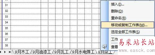 3、據(jù)同事介紹,這個(gè)表格是公司發(fā)的,不過他以前一直用WPS,最近才改回Excel,懷疑是不是不同的應(yīng)用程序來回修改并保存造成的? 因?yàn)橐矝]有其他的疑點(diǎn),暫且如下方式嘗試一下:右鍵點(diǎn)擊其中的一張工作表,選擇“移動(dòng)或復(fù)制工作表(M)…”;