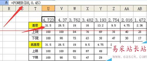 2、列出需要的篩孔尺寸-并計算出相應0.45次方的值