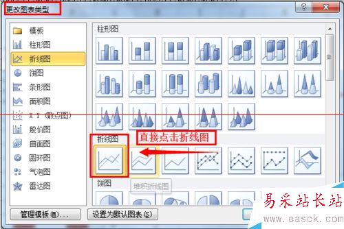 8、在“更改圖表類型”面板,單擊“折線圖”→確定