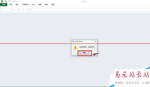1、打開文件提示損壞,點(diǎn)擊確定按鈕,進(jìn)入空白程序界面。