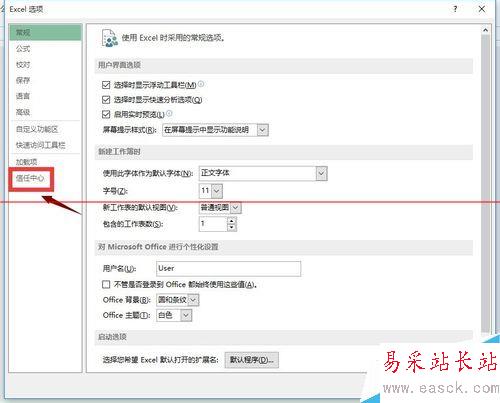 4、在選項中選擇信任中心,如下圖所示