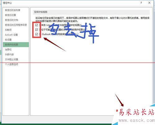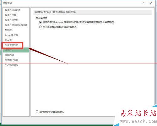 6、在信任中心設(shè)置邊欄選擇受保護(hù)的視圖,如下圖所示