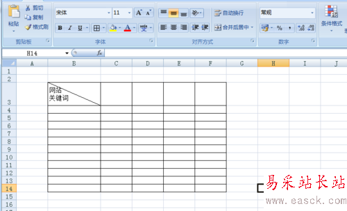 6、在單元格中輸入斜線劃分的文字標題,***注***要用“ Alt + 回車鍵 ”換行輸入第二個,如:輸入完“網站 ”,“ Alt + 回車鍵 ”換行,再寫“關鍵詞”