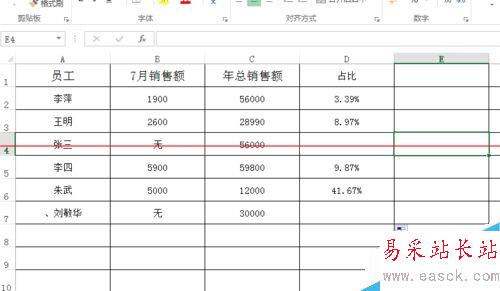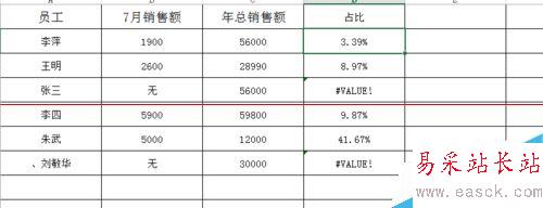 5、用鼠標(biāo)將占比列向下拉進(jìn)行填充。