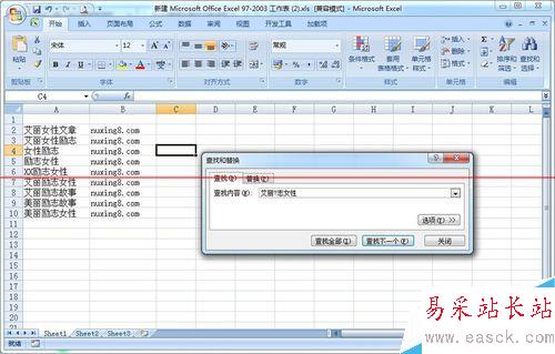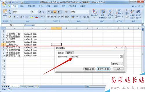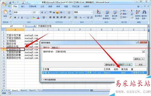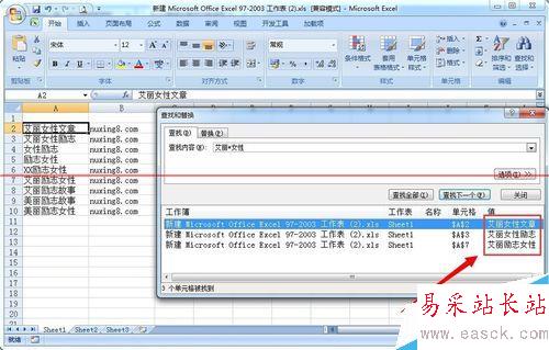 5、假如如果只忘記“勵志”這個兩字或多個字符時,可以用 問號“*"(表示任意個字符),就可以輸入查找內容“艾麗*女性”,然后點擊“查找全部”