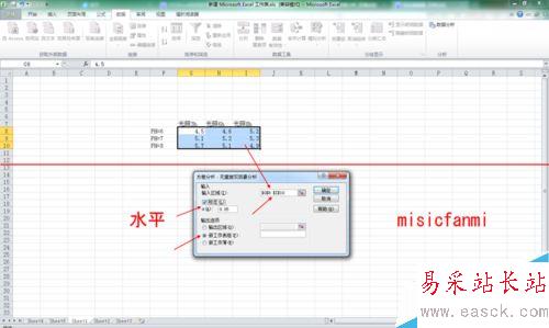 第四步:選擇輸入區(qū)域,即你的數(shù)據(jù)。選擇輸出數(shù)據(jù),有三個選項,隨便選擇一個,這里演示為新工作表。另外,標志可以勾選。點擊確認。