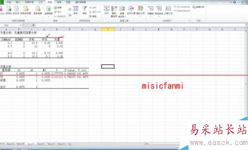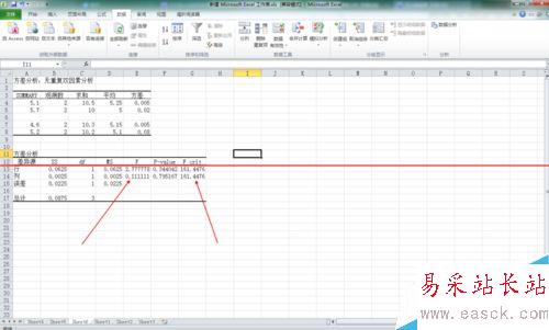 第五步:在這里我們可以看到分析出來的數(shù)據(jù)了,有方差,平均值。一般我們看F值和F crit值得大小就可以了。如果F>Fcrit,說明這個因素對結果有顯著作用。在這里,明顯可以看多F都小于F crit,說明PH和光照對蟲草的出草長度無顯著性差異。