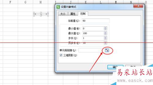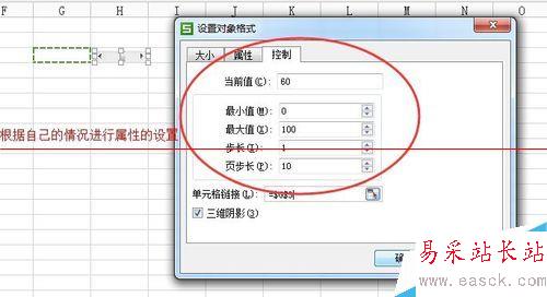 7、選中關(guān)聯(lián)滾動條的單元格時候,我們就根據(jù)自己的需要對滾動條的屬性等進行設(shè)置。