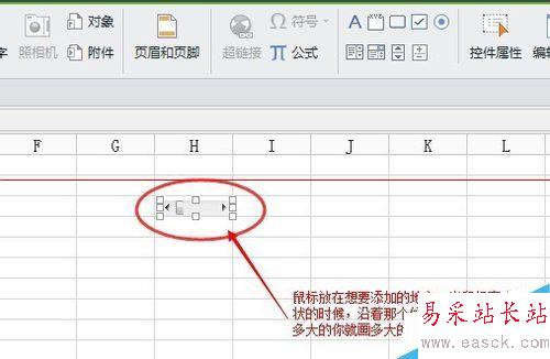 4、鼠標(biāo)放在想要添加滾動條的單元格上方,當(dāng)鼠標(biāo)變成+字樣的時候,可以畫出自己想要的滾動條形狀。