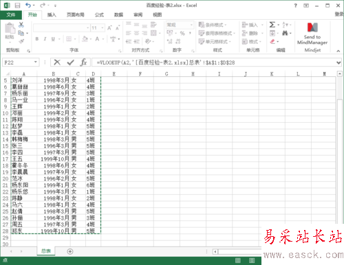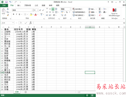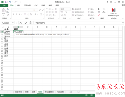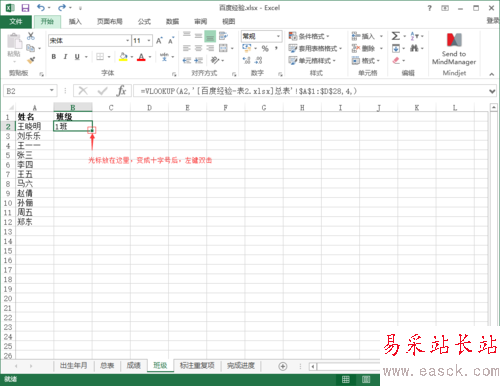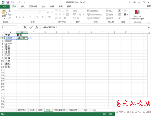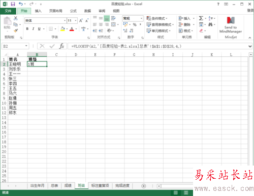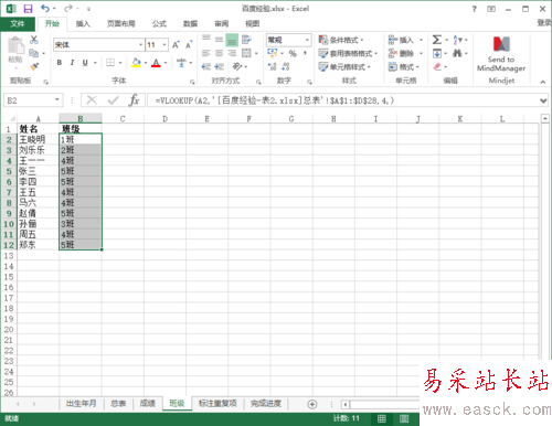 1、我們一個excel表,需要在另一個表中找出相應同學的班級信息。