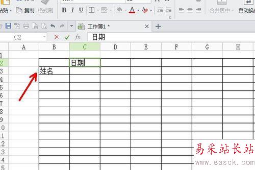 2、在表頭的四個(gè)格式為對(duì)象框中輸入項(xiàng)目名稱,比如這里的“姓名”和“日期”