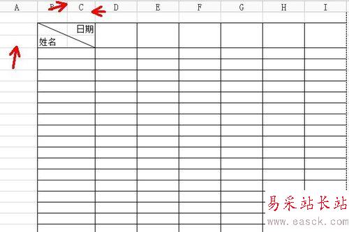 7、最后就是調(diào)整表格了,姓名和日期對(duì)應(yīng)的豎欄和橫欄合并單元格