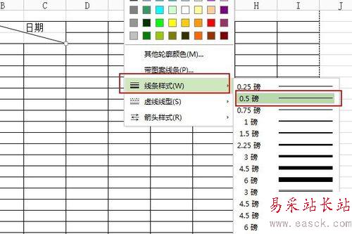 6、接著將線條的“線條樣式”改為“0.5磅”原來(lái)的默認(rèn)效果不合適整體的