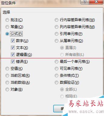 6、除了選公式外還有很多其他的定位條件可以選擇,關(guān)鍵在于自己的探索。