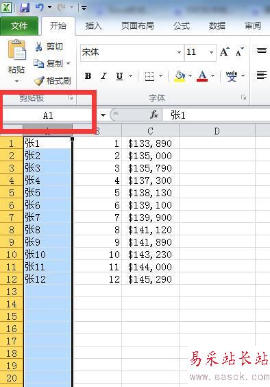3、選中要命名的單元格或單元格區(qū)域,鼠標(biāo)單擊編輯欄頂端的“名稱框”,在其中輸入名稱后回車。這里我們輸入“名字”