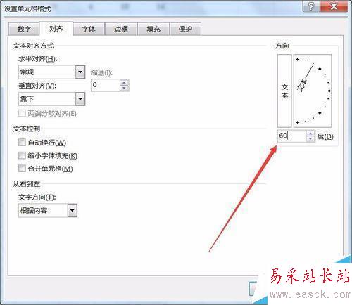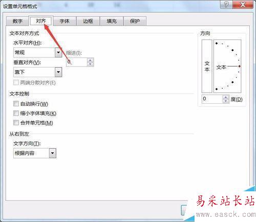 2、進(jìn)入界面后,選擇對齊,在右上角調(diào)整文本傾斜度數(shù)