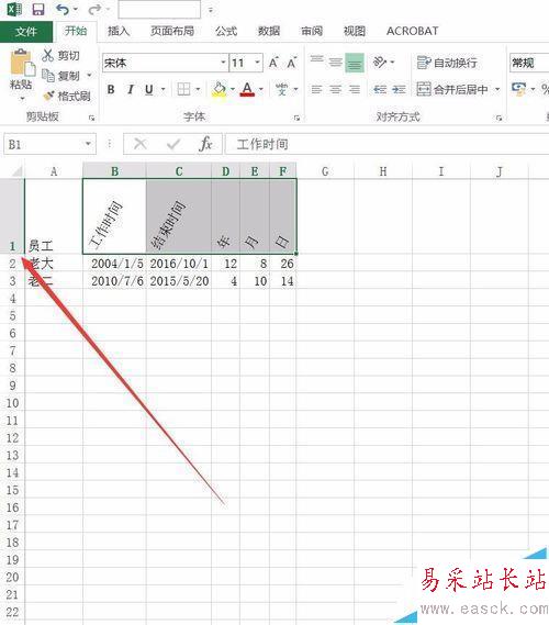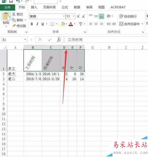 6、需要調(diào)整幾列的寬度一致,可以將B/C/D/E幾列一起選中,調(diào)整一行其他的也會動。