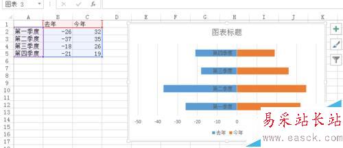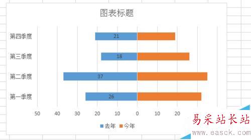 Excel怎么制作分布在縱坐標兩側的水平柱狀圖?