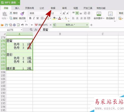 3、點擊菜單欄的【數據】,切換到數據菜單。