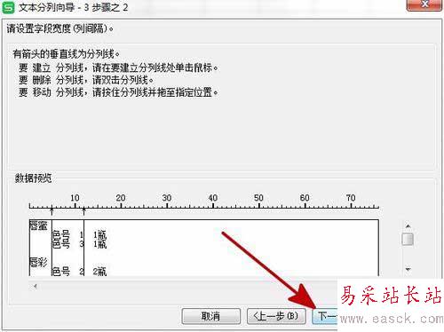 7、【分列線】就是下方【數據預覽】框內的直線。