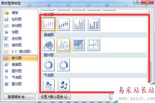 除此之外還有圓環(huán)圖,氣泡圖,雷達圖,股價圖,曲線圖,XY散點圖。
