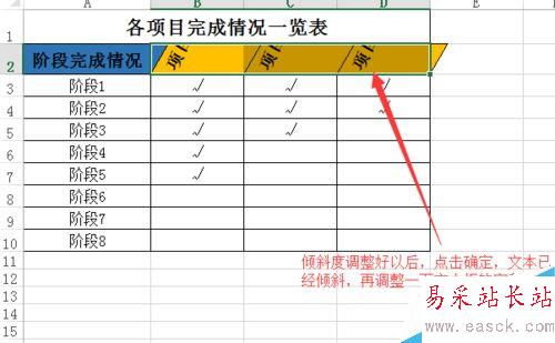 確認(rèn)好后,就制作成一個(gè)傾斜的表頭了。