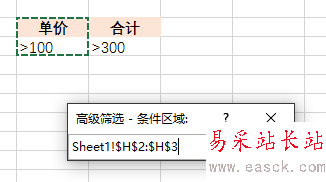 如果想看符合單價大于100并且總價大于300的那些項目,操作方法同上,只是在選取數據的時候,列表區域要全選單價和合計部分的數據(為了選取方便,可以將數量部分一并選中),條件區域全選設定的單價和合計部分就可以啦。