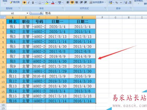 1、打開Excel表格文件,然后選中需要進(jìn)行隔行填充的全部數(shù)據(jù)。