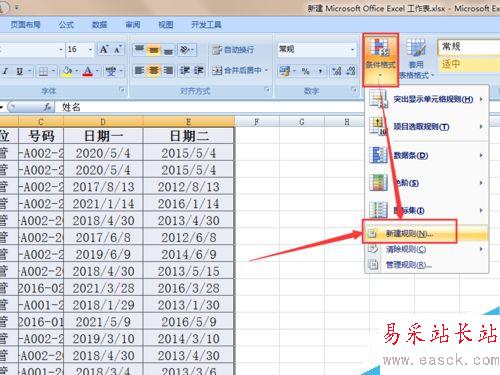 2、接下來點(diǎn)擊“開始”選項(xiàng)卡中的“條件格式”,然后從下拉列表中選擇“新建規(guī)則”。