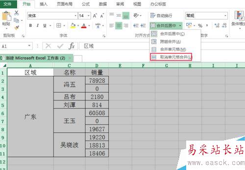excel中如何快速拆分并填充空白單元格?方法很簡單,快來學習一下吧。