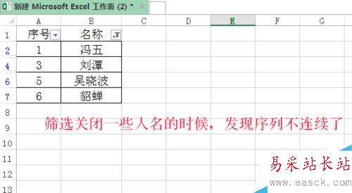 6、重新篩選發現,把右側序列刷新,序號還是連續的。