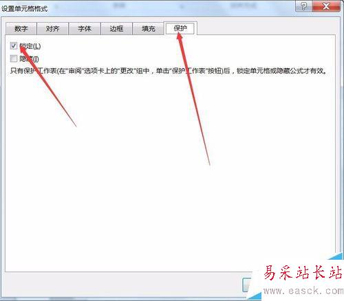 4、打開“保護”選項卡,上方有個鎖定,勾選。